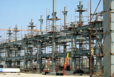 世博中心為2010年上海世博會三大永久場館之一,總建筑面積月14萬平方米,分會展區(qū)和會議區(qū)兩個單體,其中兩側(cè)為會展區(qū),其南北長約90米,東西長約162米,屋面高度約39米,南北二側(cè)的樓電梯間,是大跨度無蓋的主要支撐。核心筒橫向?qū)挾?/span>4.8米,縱向長度9米,間距18米。該工程總用鋼量約2.6萬噸,我公司承擔(dān)會展區(qū)1.45萬噸的鋼結(jié)構(gòu)制作。
